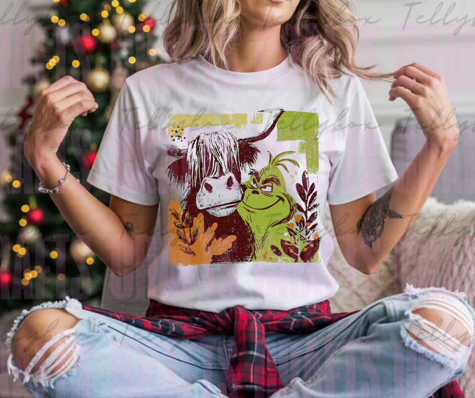 cow and mean green dtf transfer
